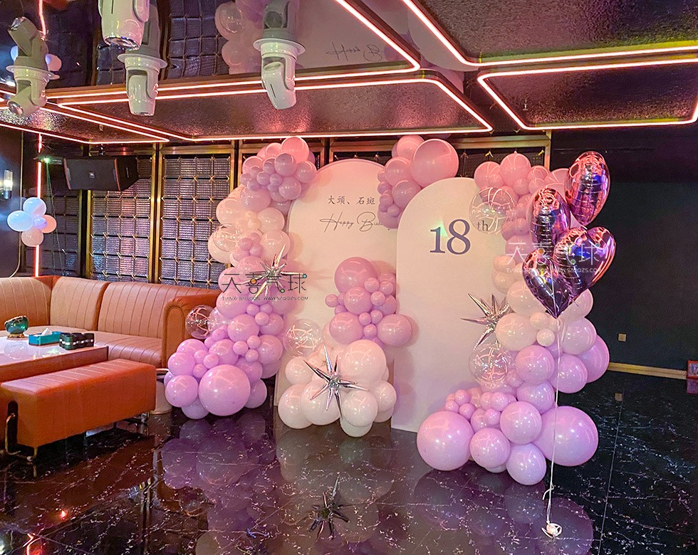 KTV生日派对装饰推荐!紫色主题气球布置