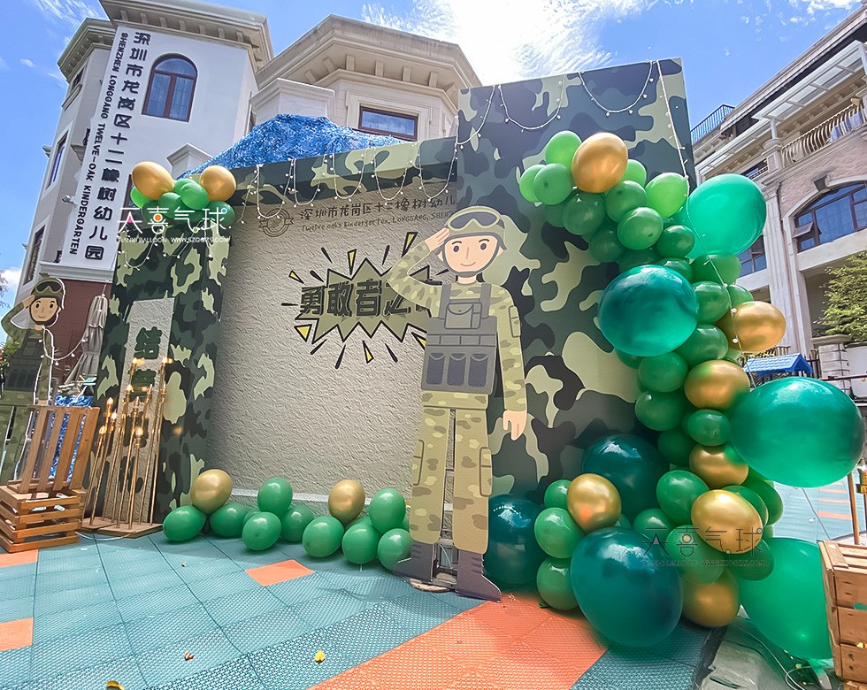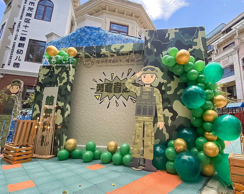 我们选择了多种绿色系的气球,包括深绿、草绿和墨绿等不同色调,通过气球拱门、气球柱和气球背景墙的设计,打造出充满活力与希望的氛围,象征着孩子们在勇敢之夜中的成长和自信。