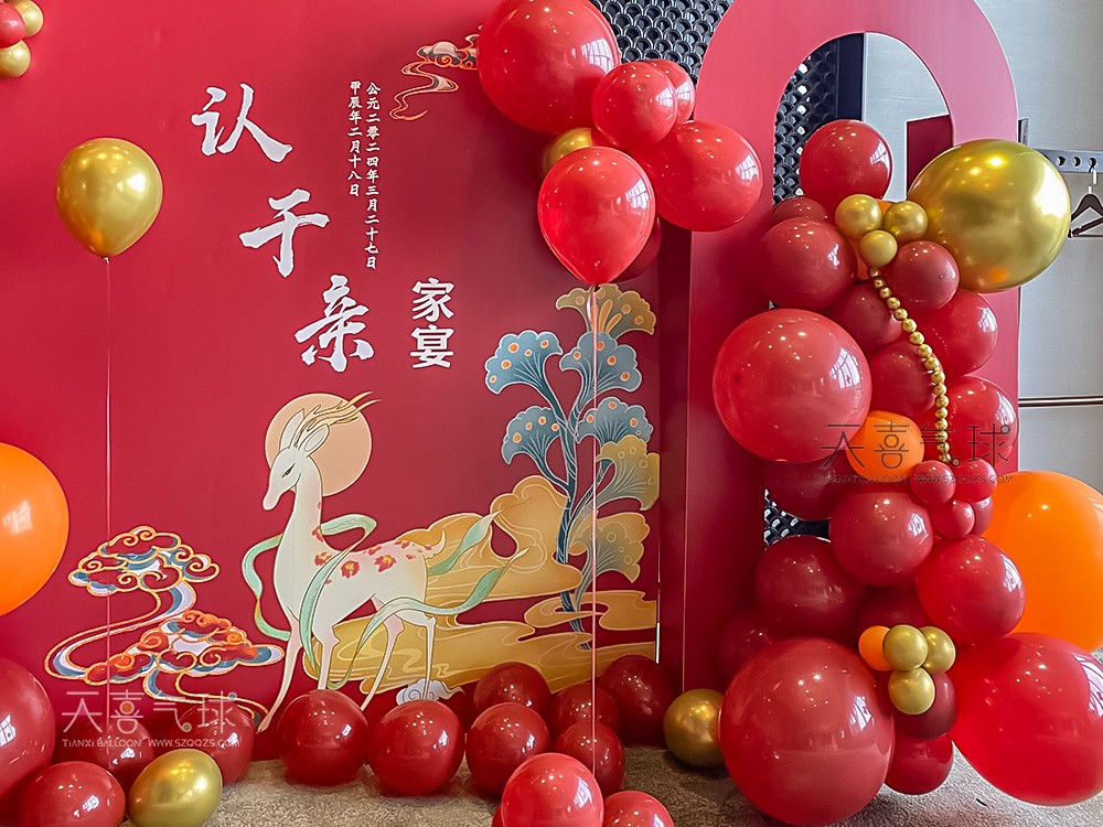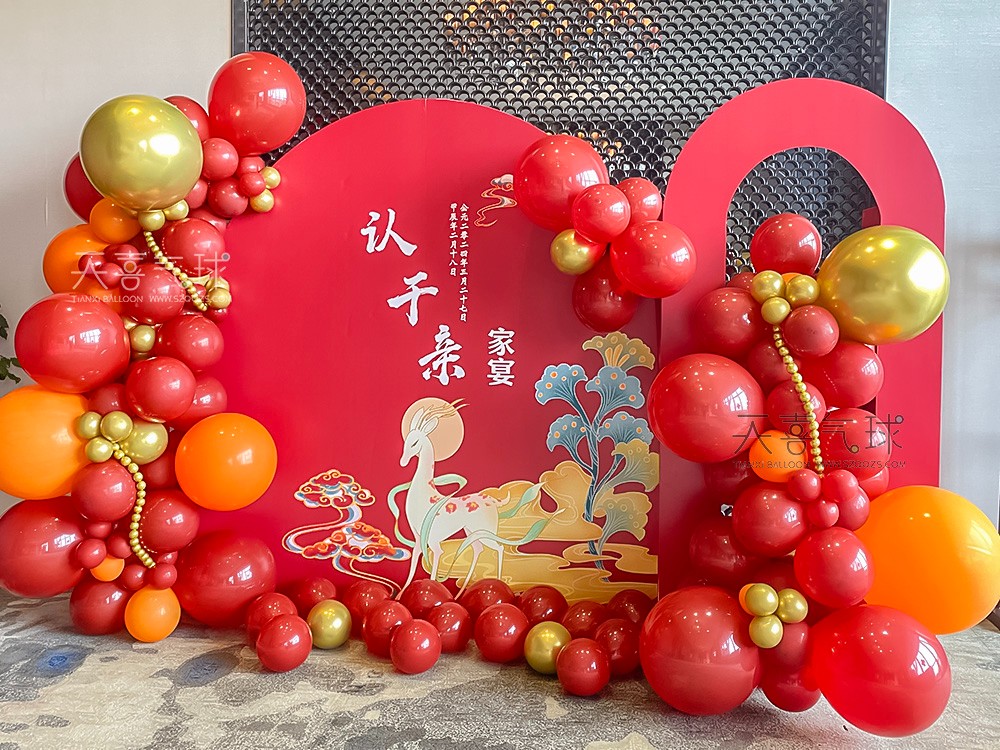🎈 精美气球装饰为了增添宴会的欢庆气氛,我们特别设计了气球背景墙,选用了金色、红色和橙色气球,既象征着吉祥如意,也营造出热烈的庆祝氛围。