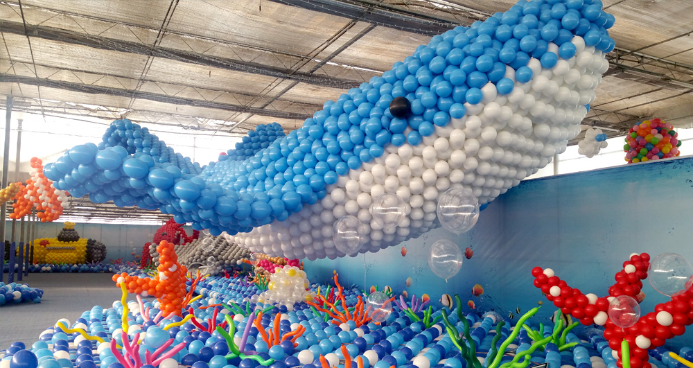 Balloon Exhibition展区介绍 海底世界展出海底探秘,有无数的海底宝藏,和各类海底生物,大章鱼,鱿鱼,大鲨鱼,鲸鱼,还有可爱的尼莫和美人鱼...穿上潜水服和我们一起来发现他们吧...